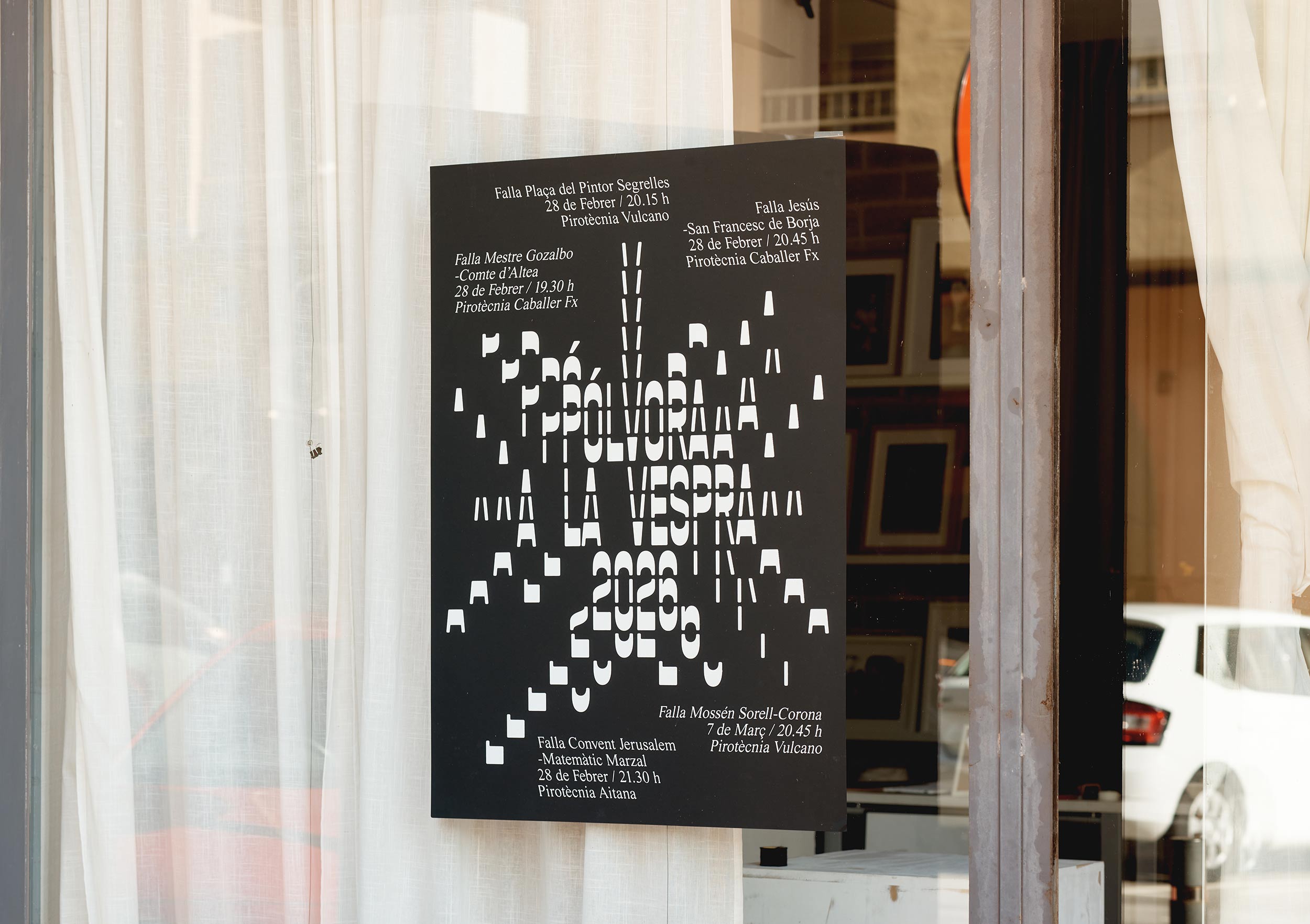 Imagen y tipografía se integran en una sola cosa, representando a través del título un instante irrepetible del espectáculo pirotécnico