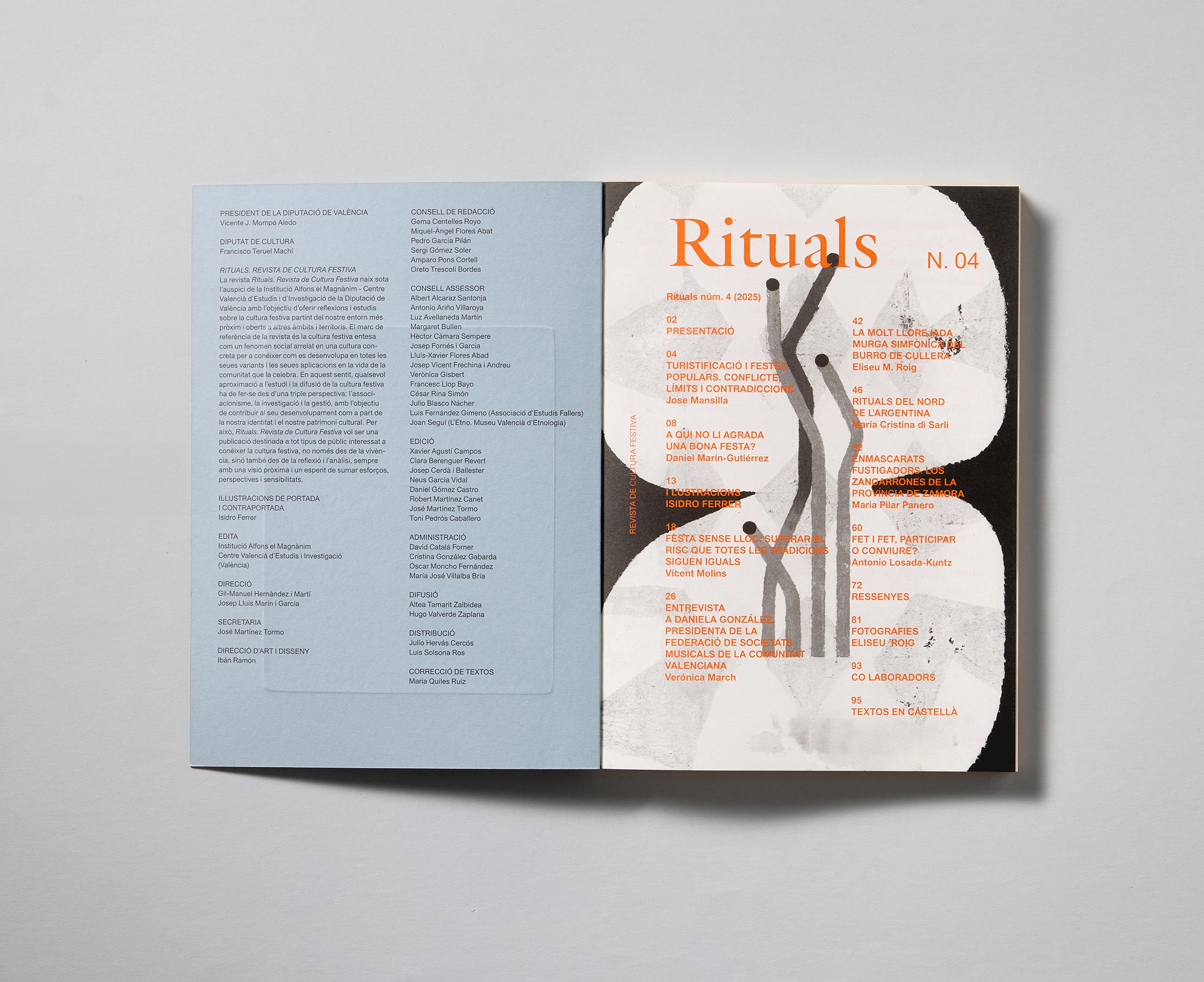Revista anual dedicada a la cultura festiva, editada por la Diputació de València. Reúne artículos de investigación junto a materiales visuales como galerías de fotografía e ilustración, con las aportaciones de Isidro Ferrer (ilustración) y Eliseu Roig (fotografía).